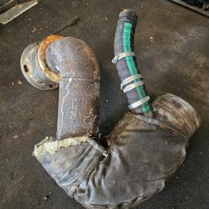 À savoir : Coude d’échappement inox Caterpillar en bon état. Était monté sur un moteur Caterpillar 3116 diesel.